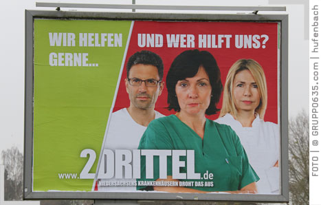 Landesweit wird deshalb aktuell in einer - weiteren - konzertierten Aktion die Öffentlichkeit über die Finanzprobleme der Krankenhäuser im Rahmen der Kampagne "2/DRITTEL - NIEDERSACHSENS KRANKENHÄUSERN DROHT DAS AUS" informiert.